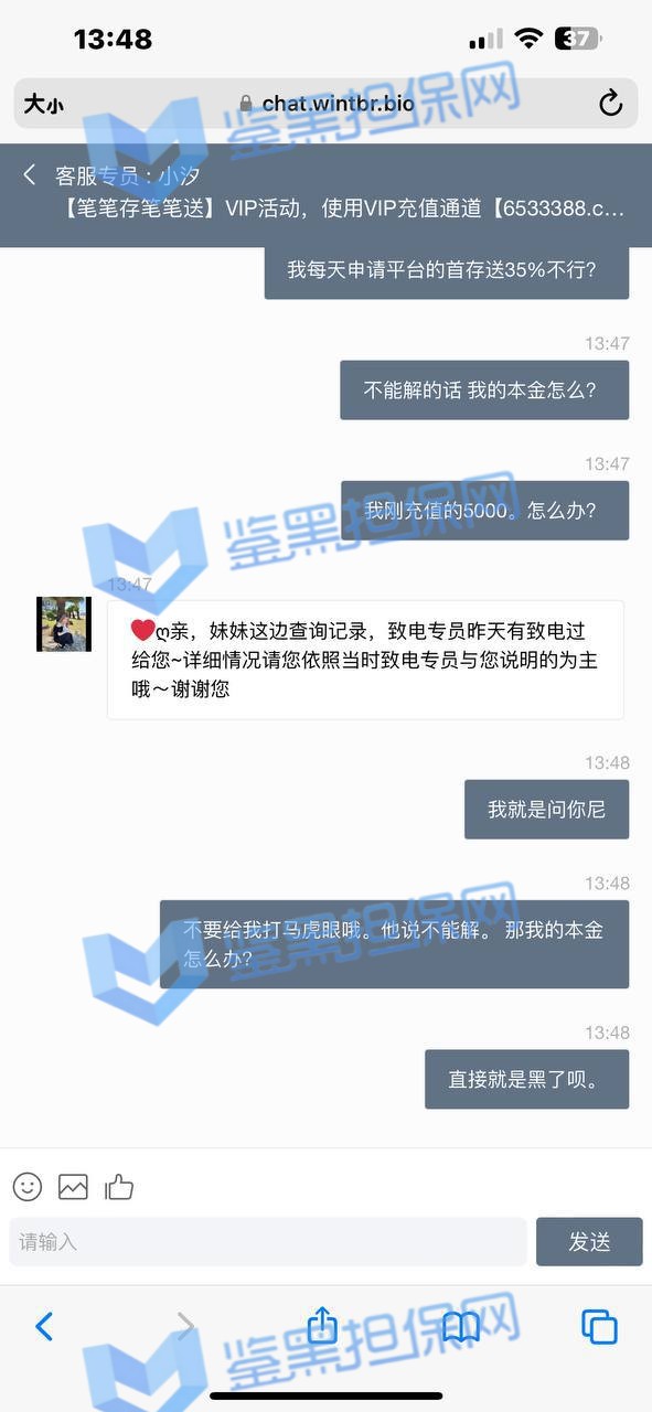 3、鉴黑担保网维权专员联系该平台相关负责人核实情况,对方表示此会员存在刷优惠套利的情况,但是维权专员追问官网活动是否针对任何用户均可参加,对方表示是可以的,那么用户享受自己的权益是没有任何问题的,游戏上面也没有任何异常情况,维权专员让其退回本金也遭到拒绝,该平台多次出现此类黑款情况,还请广大玩家远离!!