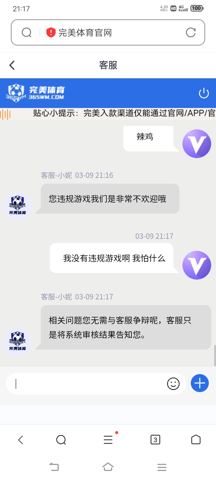 完美体育 违规游戏 冻结账号 封号 恶心 辣 客服说无需争辩 曝光恶心