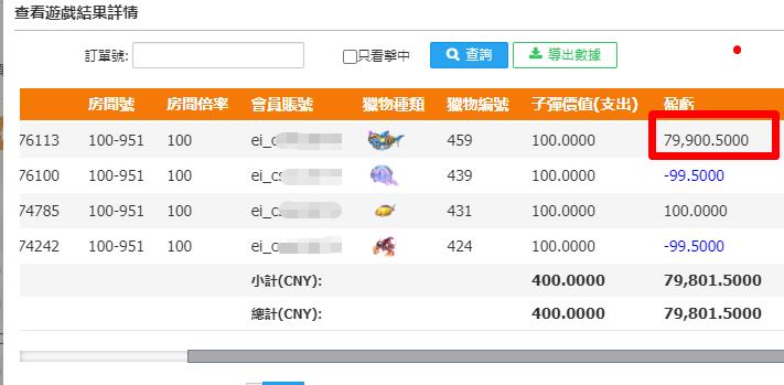 玩家cs***在 【AG】捕鱼 下注400元,单局击中宝石鲨鱼*800倍 中奖 CNY 79900!!!